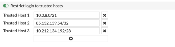 System → Administrators → {administrator} → Restrict login to trusted hosts